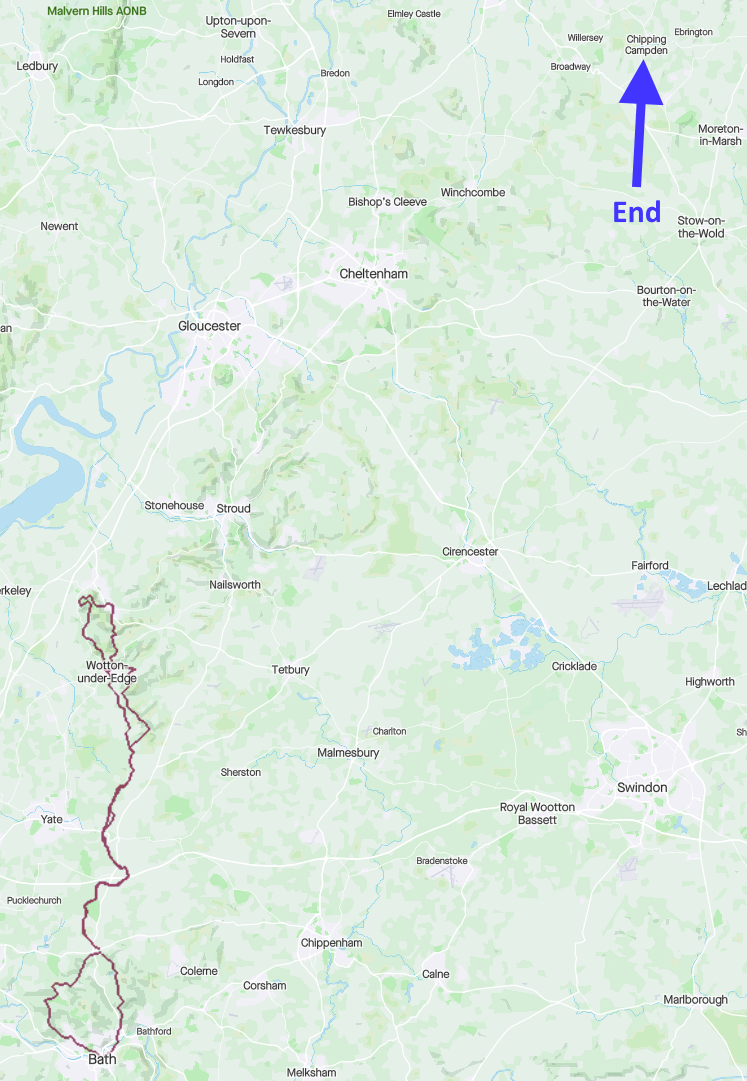 My sabbatical challenge is to run the whole of the Cotswold Way over a series of 14 segments, taking on roughly 2 a week starting in Bath, until I reach the end in Chipping Campden.