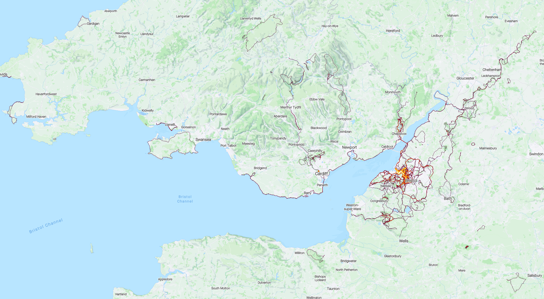 - Do more of the Wales Coastal Path: you can see on the heatmap I've made it from Chepstow to Porthcawl, I'd like to cover at least the whole south coast