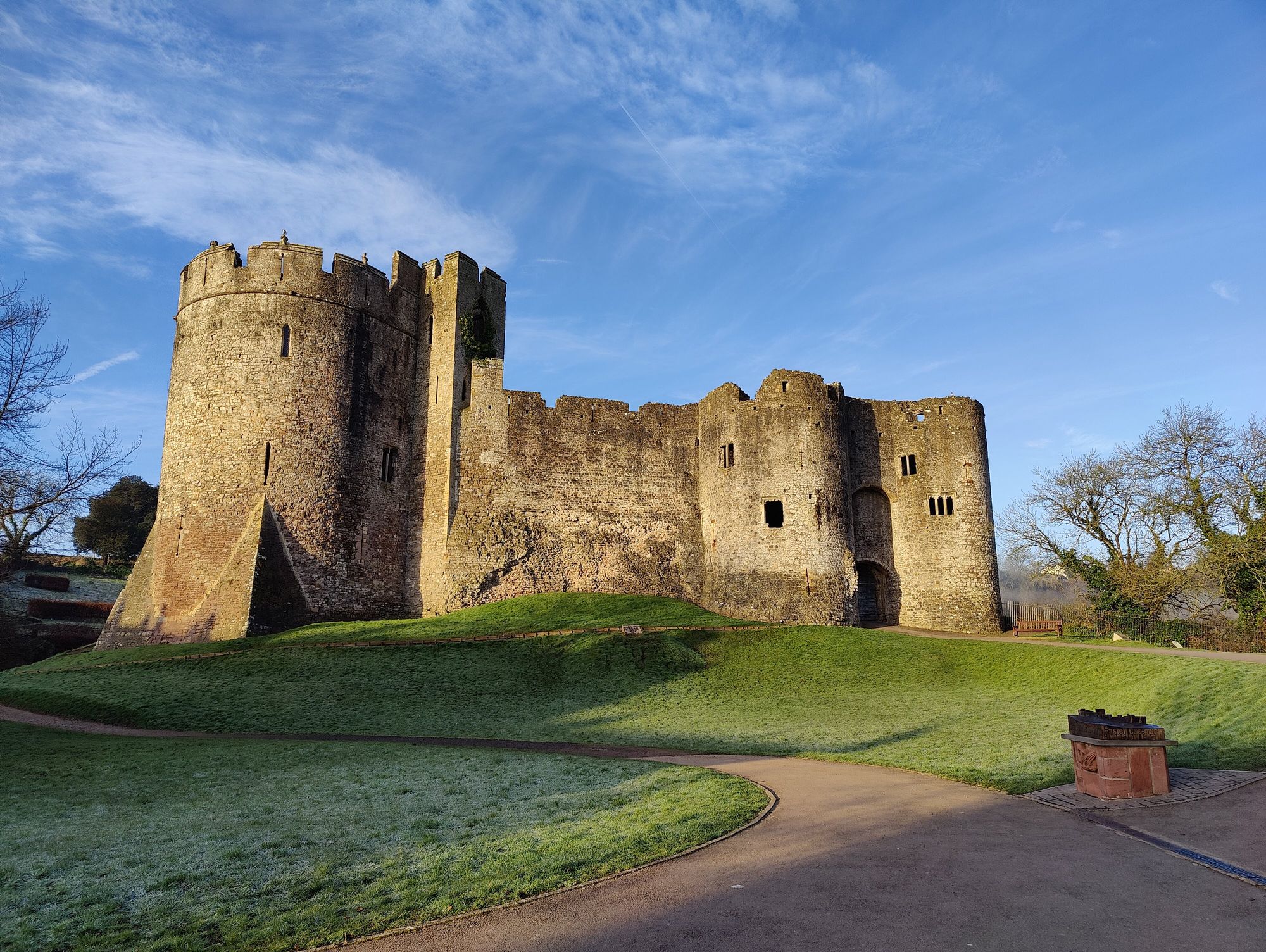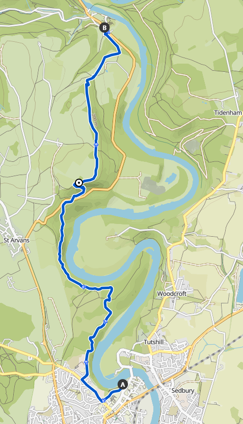 The stretch starts in the Castle Dell Car Park, going past Chepstow Castle through a park before a short stretch of road leading to the Wye Valley Walk.