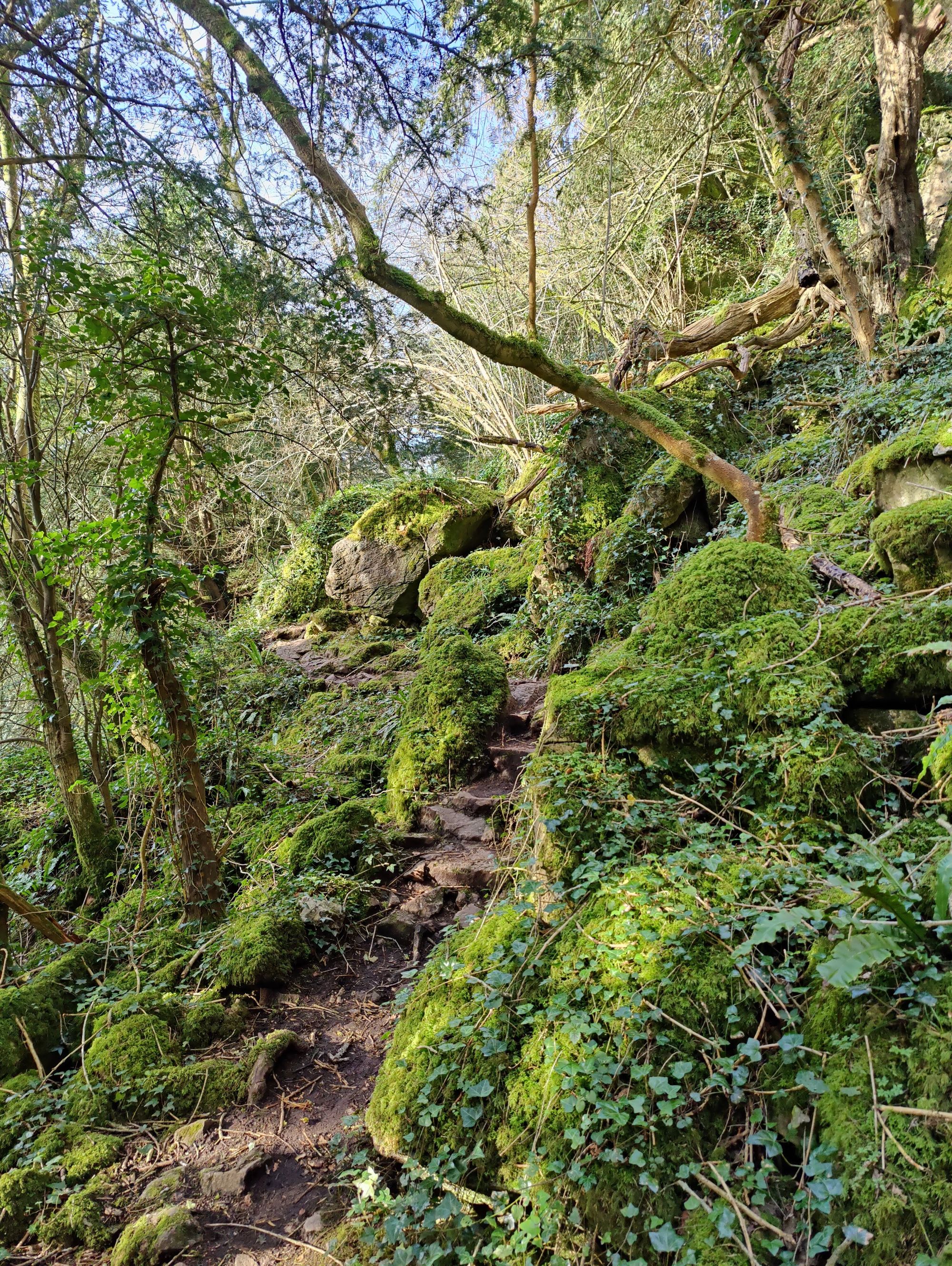 Then it's on to the climb to Eagles Nest; and this area, ho boy is it gorgeous! Ancient woodlands overgrown with moss, strewn with rocks as you pick your way up the edge of the valley before an old metal staircase bridges the way to the top of the trail.