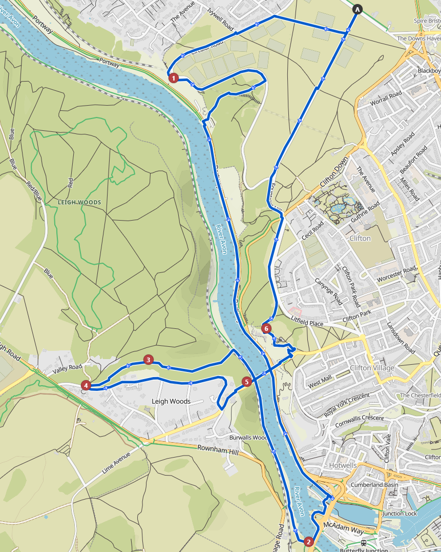 Big ol' variety run hitting the Sea Walls viewpoint, Goat Path, Portway, Harbourside, Leigh Woods & Suspension Bridge