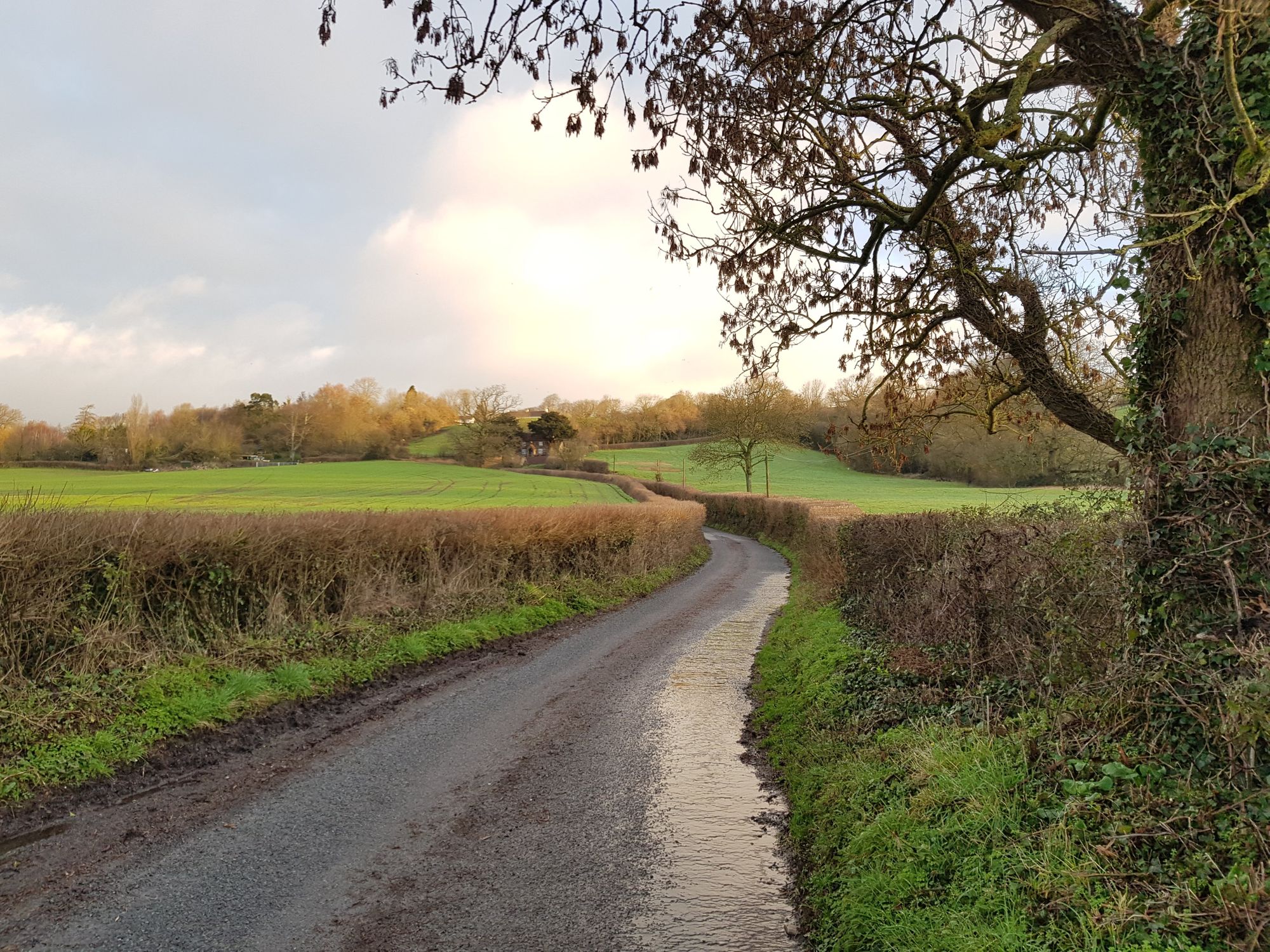 As I got into the village clouds were forming and a light drizzle set in, adding to the cold of the winter morning. I was under no illusions, I was walking that hill, there was no way I could jog it, so I set out on 3km of trudging, with a break down a boggy country lane in the middle separating the two hills.