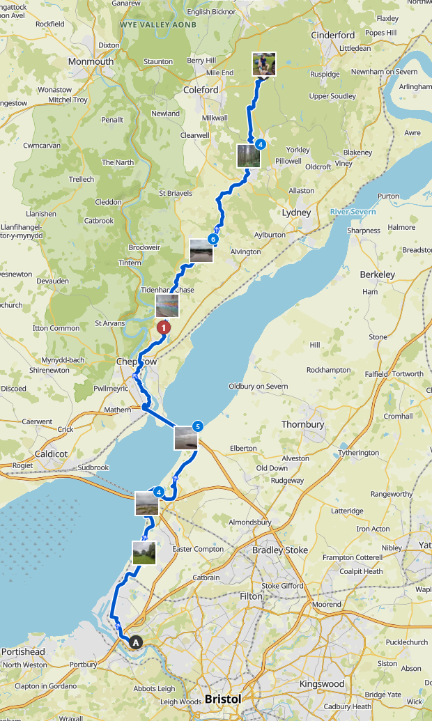 The route would take me up to Severn Beach, over the northern Severn Bridge, through Chepstow then up along the Gloucestershire Way to Bream before entering the forest.