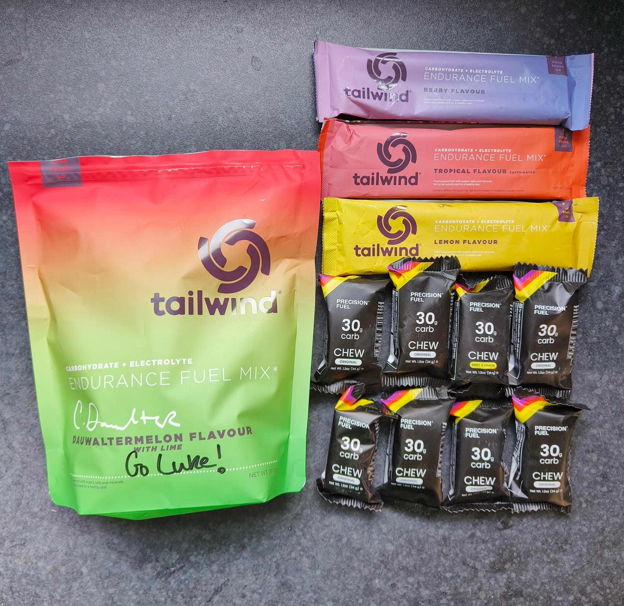 Fuelling wise I went for a straight forward approach: between aid stations I'd be sipping Tailwind to thirst (1 scoop to every 500ml water) and eating a pack of PH Chews every hour. At aid stations I'd opt for some real food to keep my stomach happy.