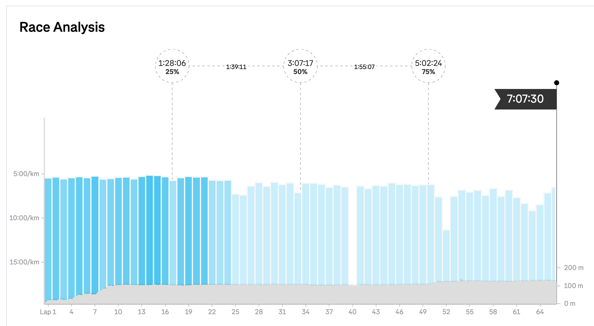 - Performance up to the 50k mark: was able to maintain a solid pace until the heat got to me