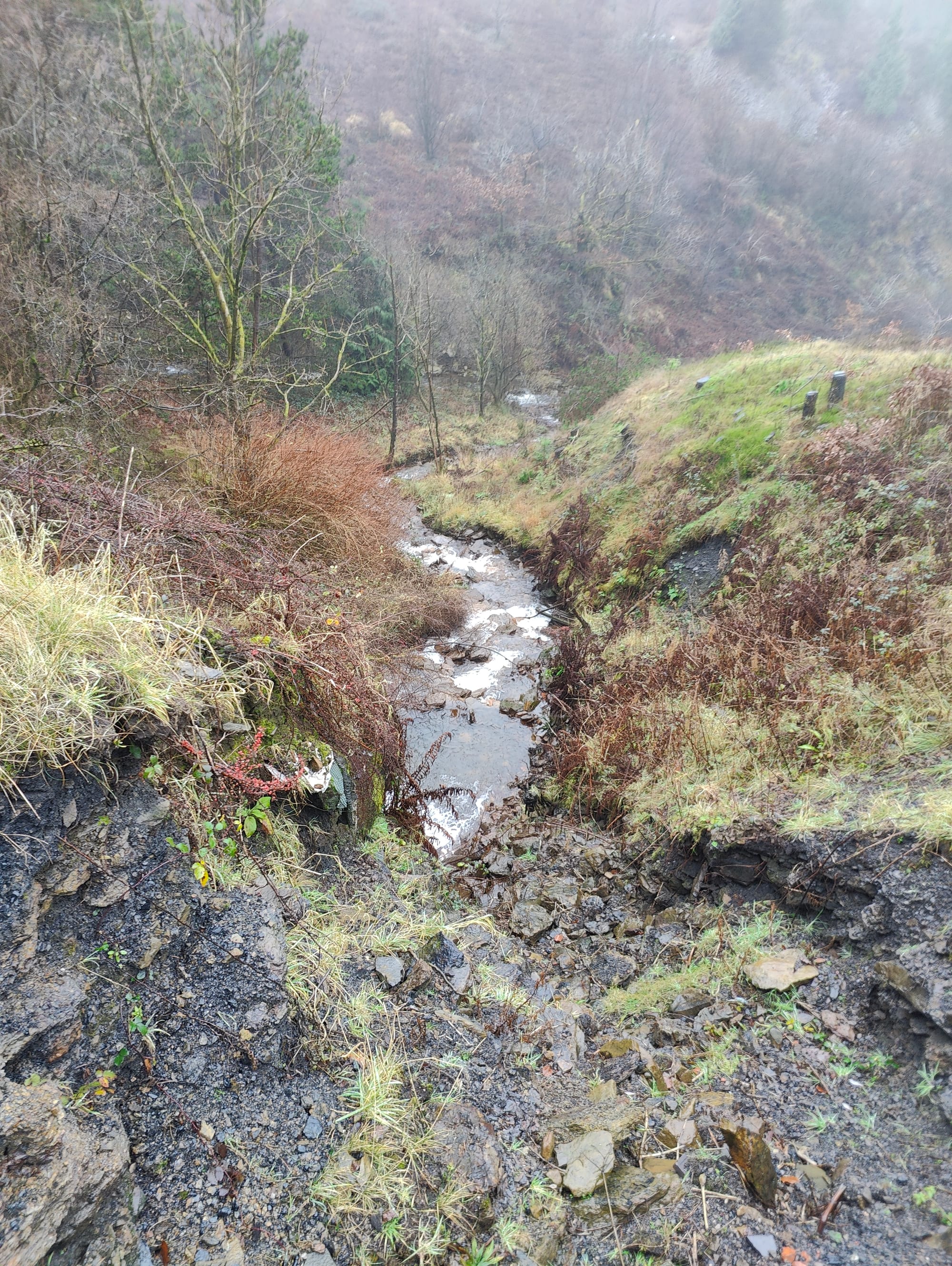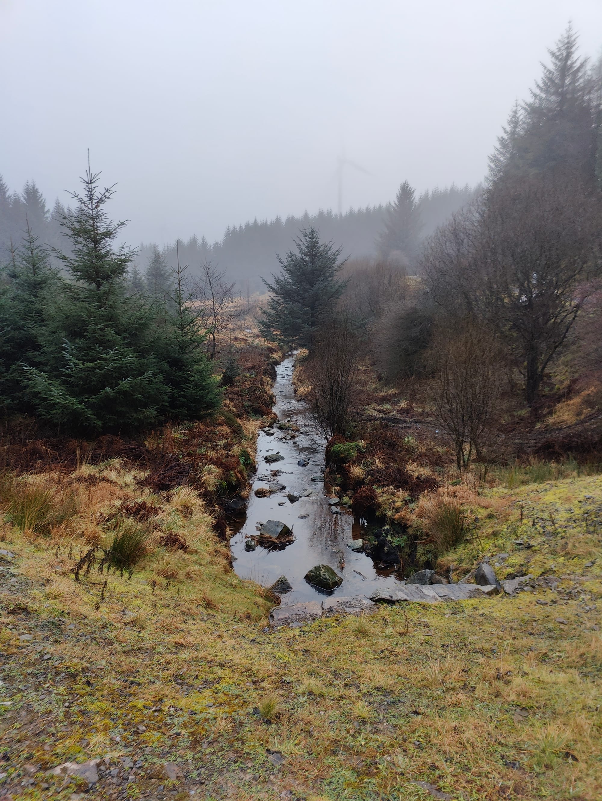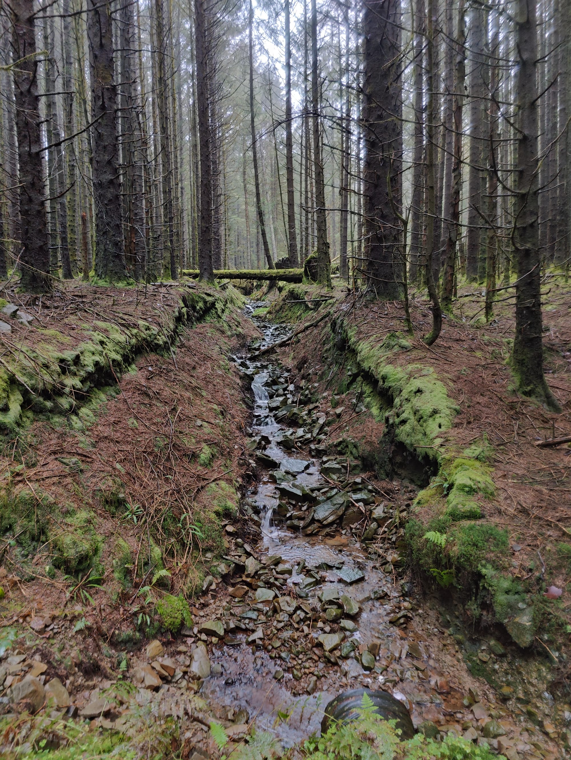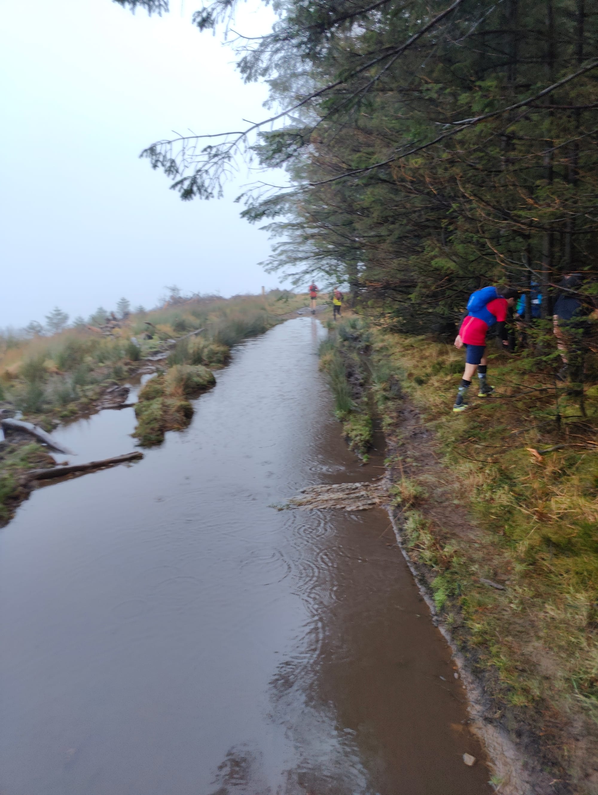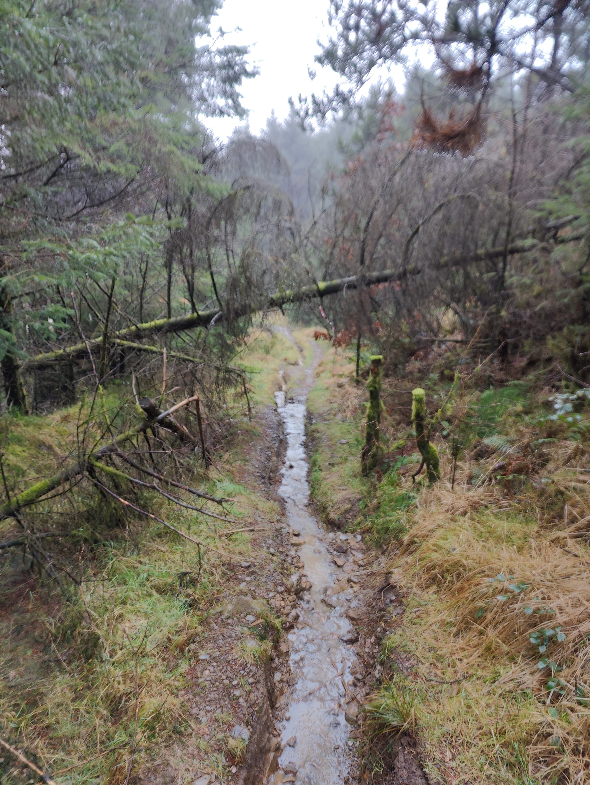 Zig zagged through another waterlogged section with streams running down the hillside.