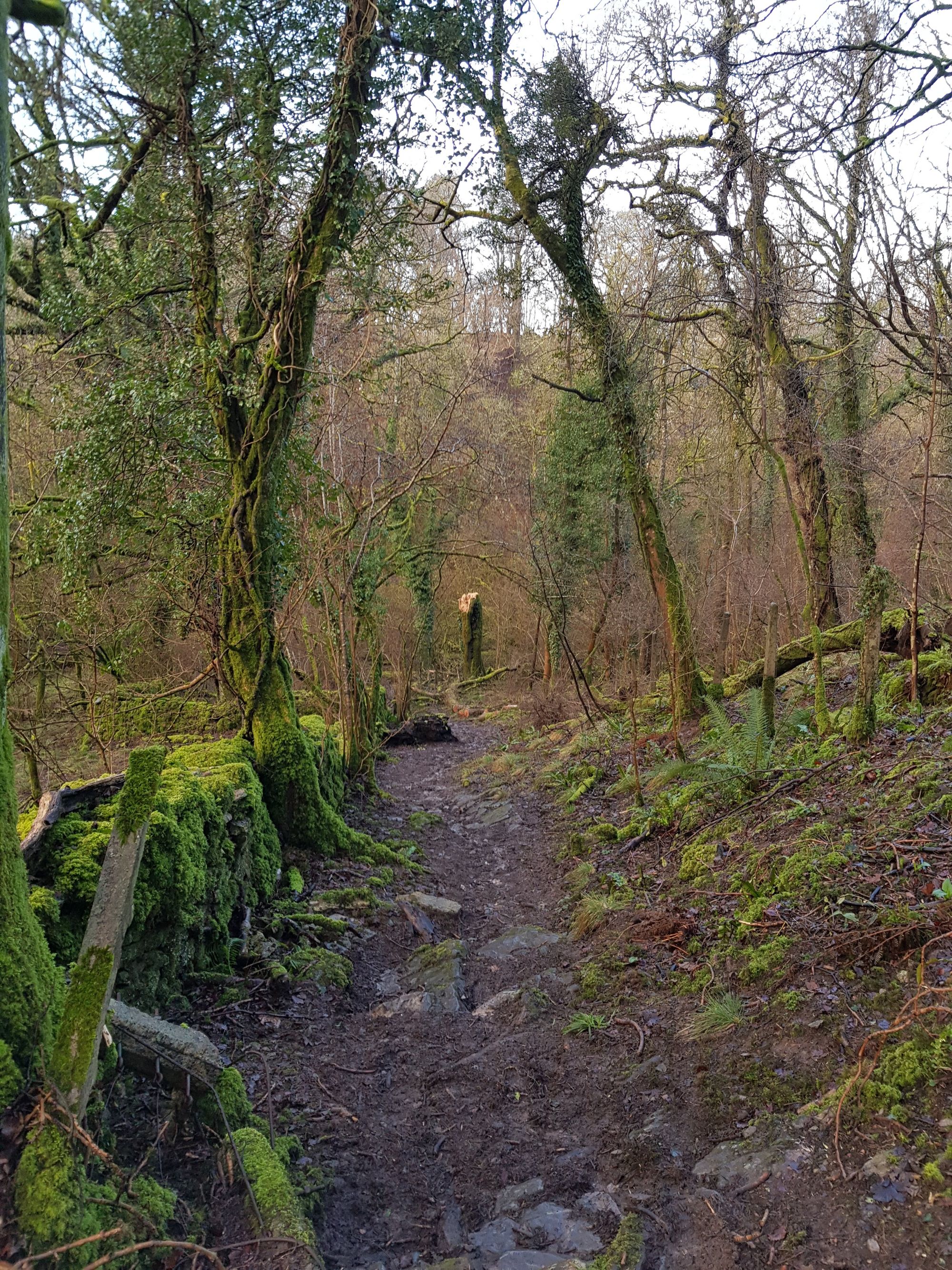 At Blagdon Lake the route leads down an old rocky road into woodland, then follows the top of the lake around to a bridge leading into Blagdon Village.
