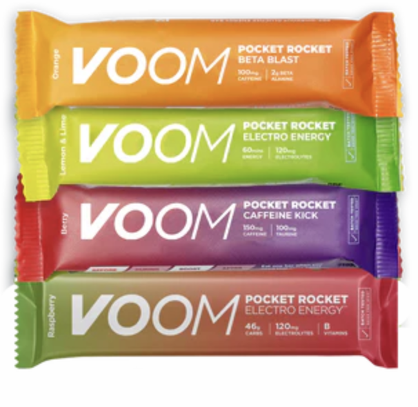 Voom Pocket Rocket Bars are a bit like Kendal Mint Cake, pretty raw ingredients forming a quick hit of energy. I'll alternate these with the Veloforte Bars to stay balanced. The flavours are great and each bar is the equivalent to 2 gels.