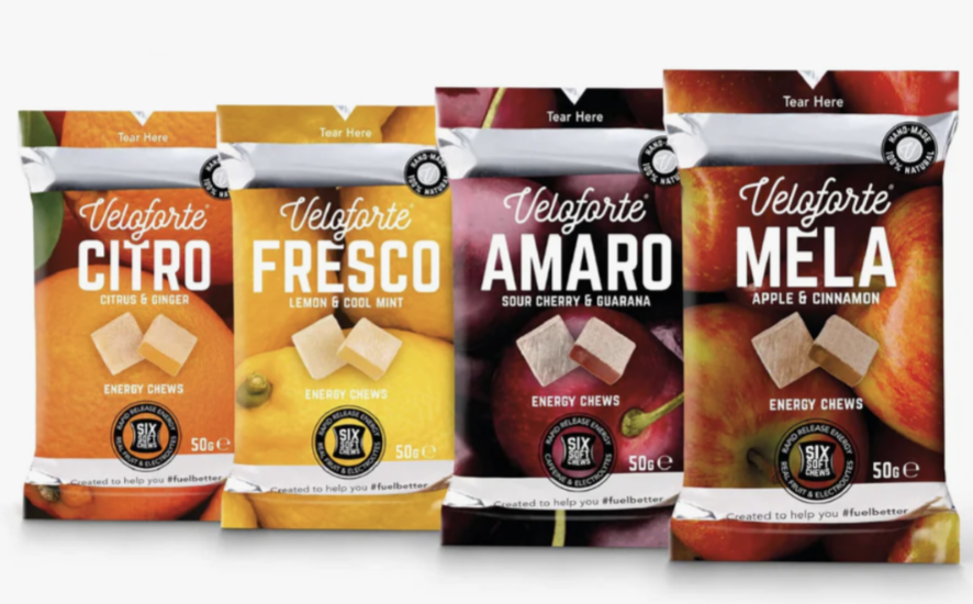 Finally we've got the Veloforte Chews, which are a bit like turkish delight, made with fruit and nothing artificial. I'll mix between Voom and these chews when looking for something more sugary. Again each pack is the same as 2 gels.