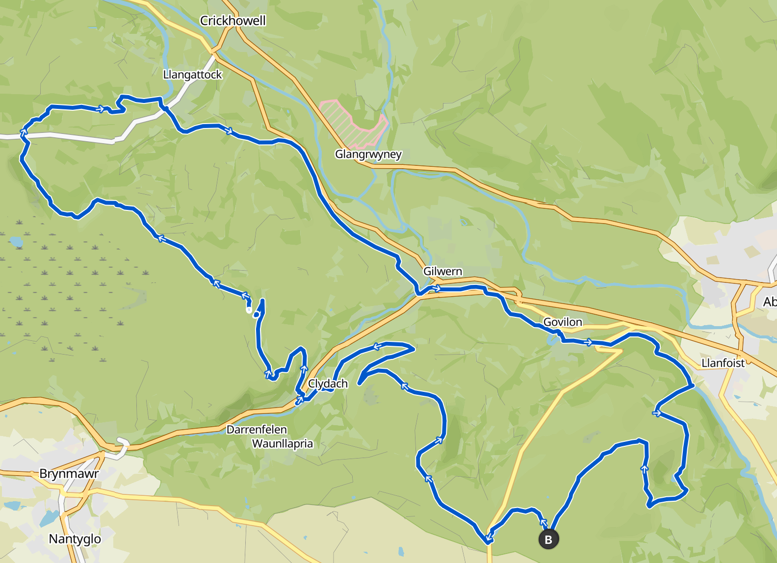 39k, 890m vert, starting at Llangattock where they looks to be plenty of parking.