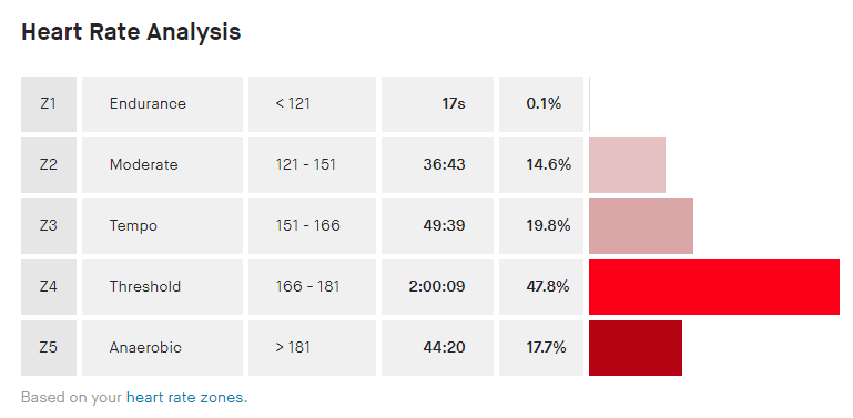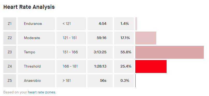 - Able to maintain a moderate HR on an easy run (a 06:00/km pace should be hitting ~151 BPM, not ~175!)