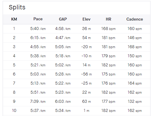 Any split averaging 05:30 or less is far far too fast, I should've been taking it gently from the beginning. I got bloody PRs over the Downs like a muppet for goodness sake.