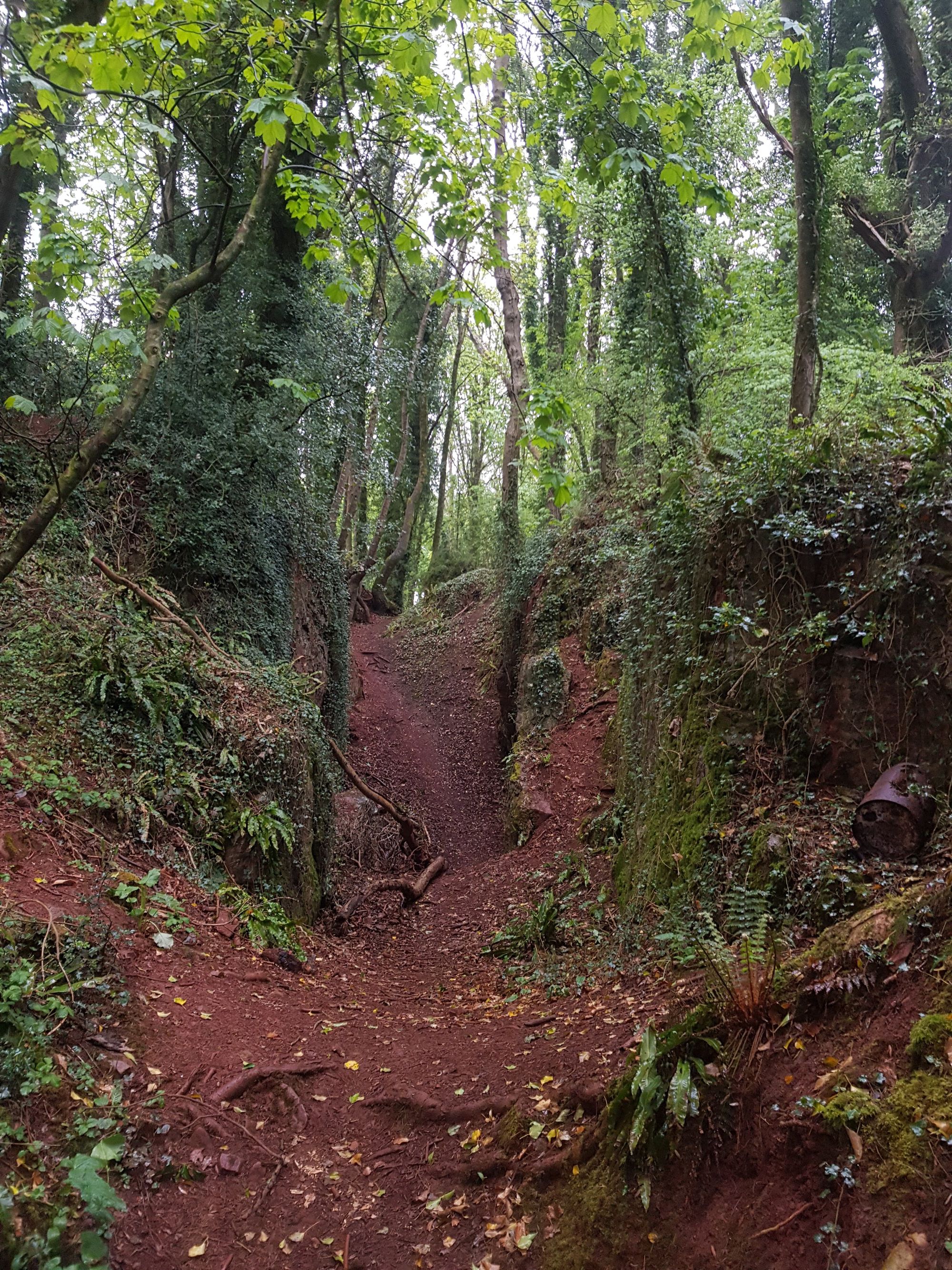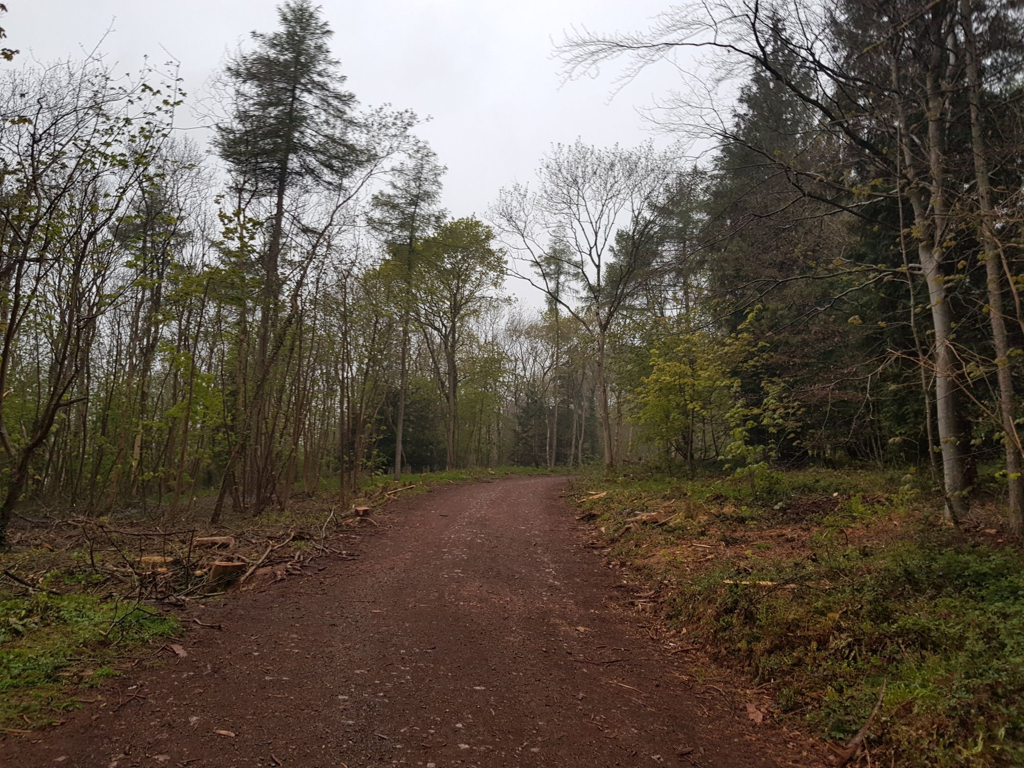Breaking out the of the fields you climb up a country lane back into the woods before another technical section that runs along the mountain biking park towards the Failand carpark.