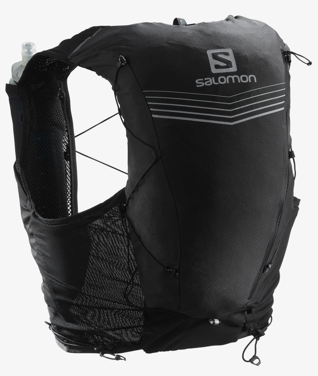 Still going strong with the Salomon Adv Skin 12 running pack; plenty of storage for a Marathon. The variety of pockets ensure I can keep all the nutrition to hand, the front bottle holders are convenient for refuelling and it has space for a hydration pack if that's your sort of thing.