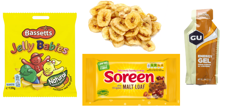 - Jelly Babies - 4 babies == 20g carbs
