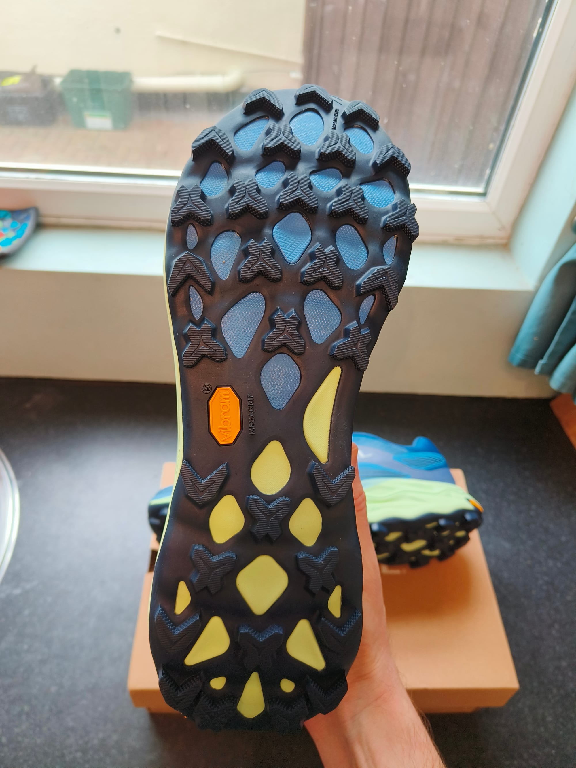 - 5mm Vibram Megagrip outsole with Traction Lug (the little nobbly bits on the lugs that are meant to help with grip further)