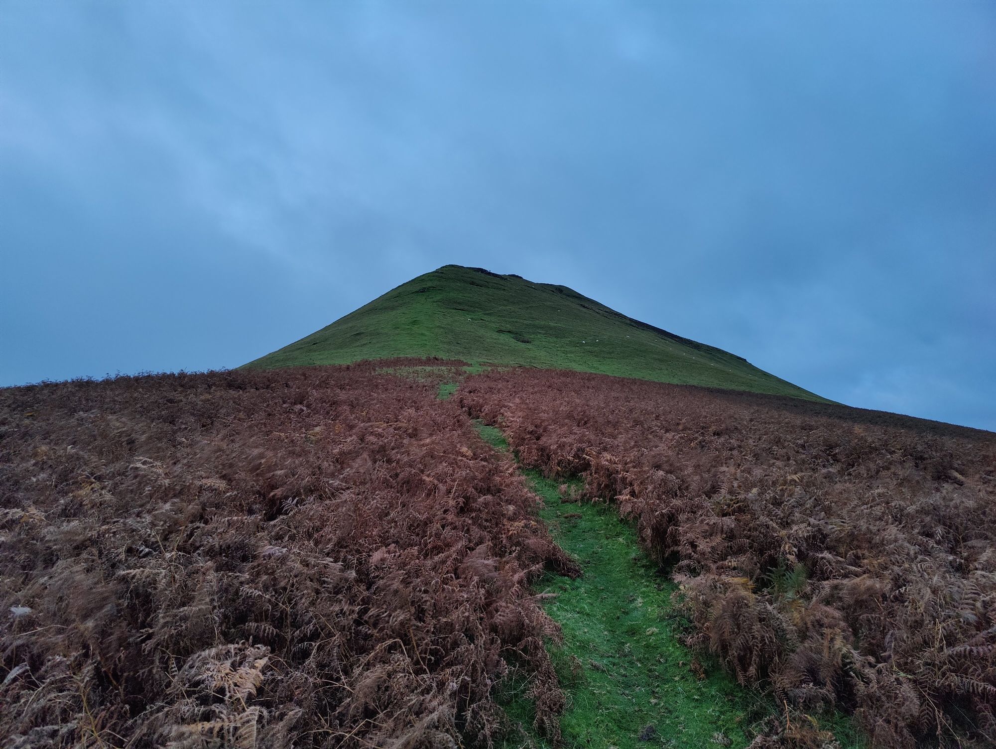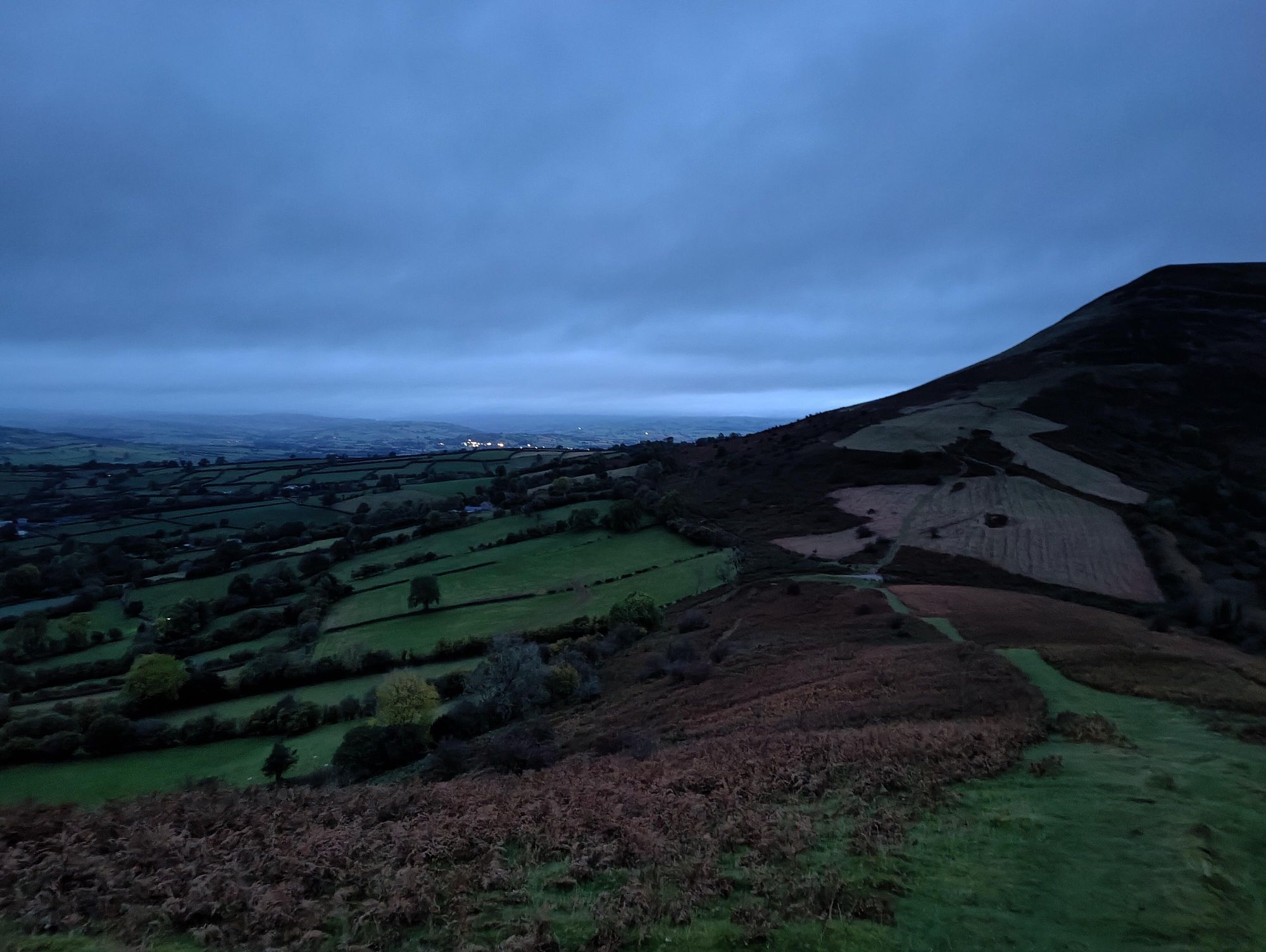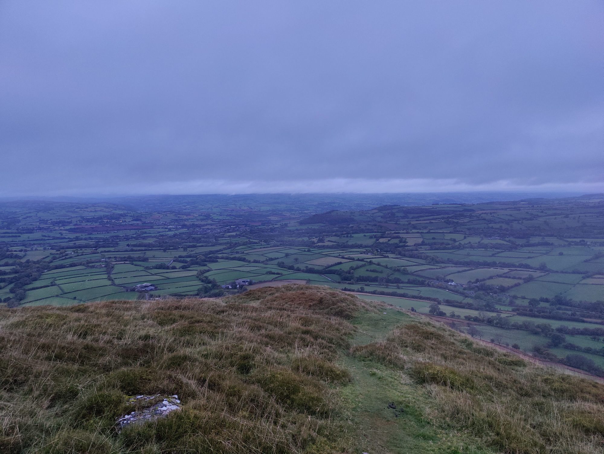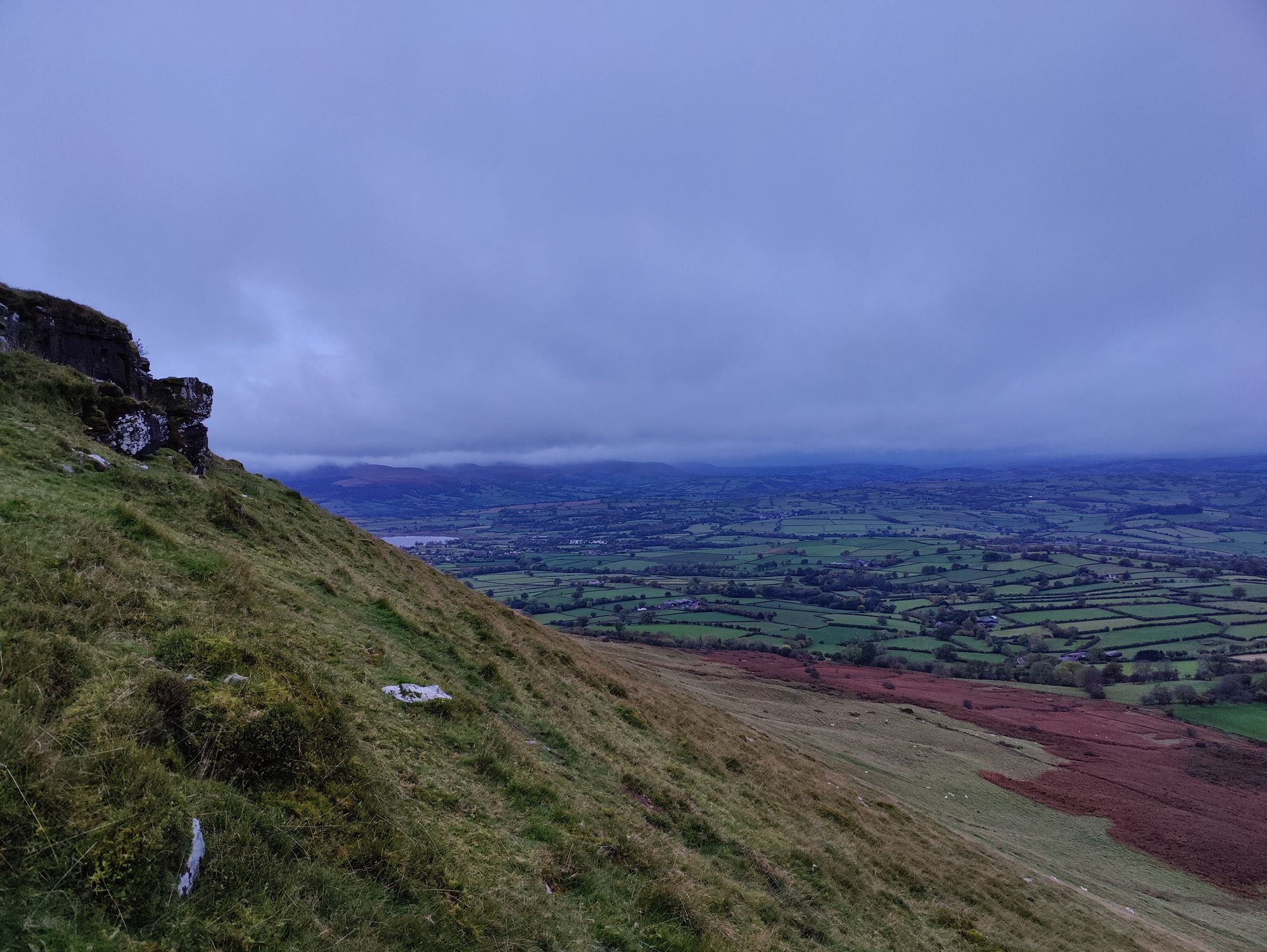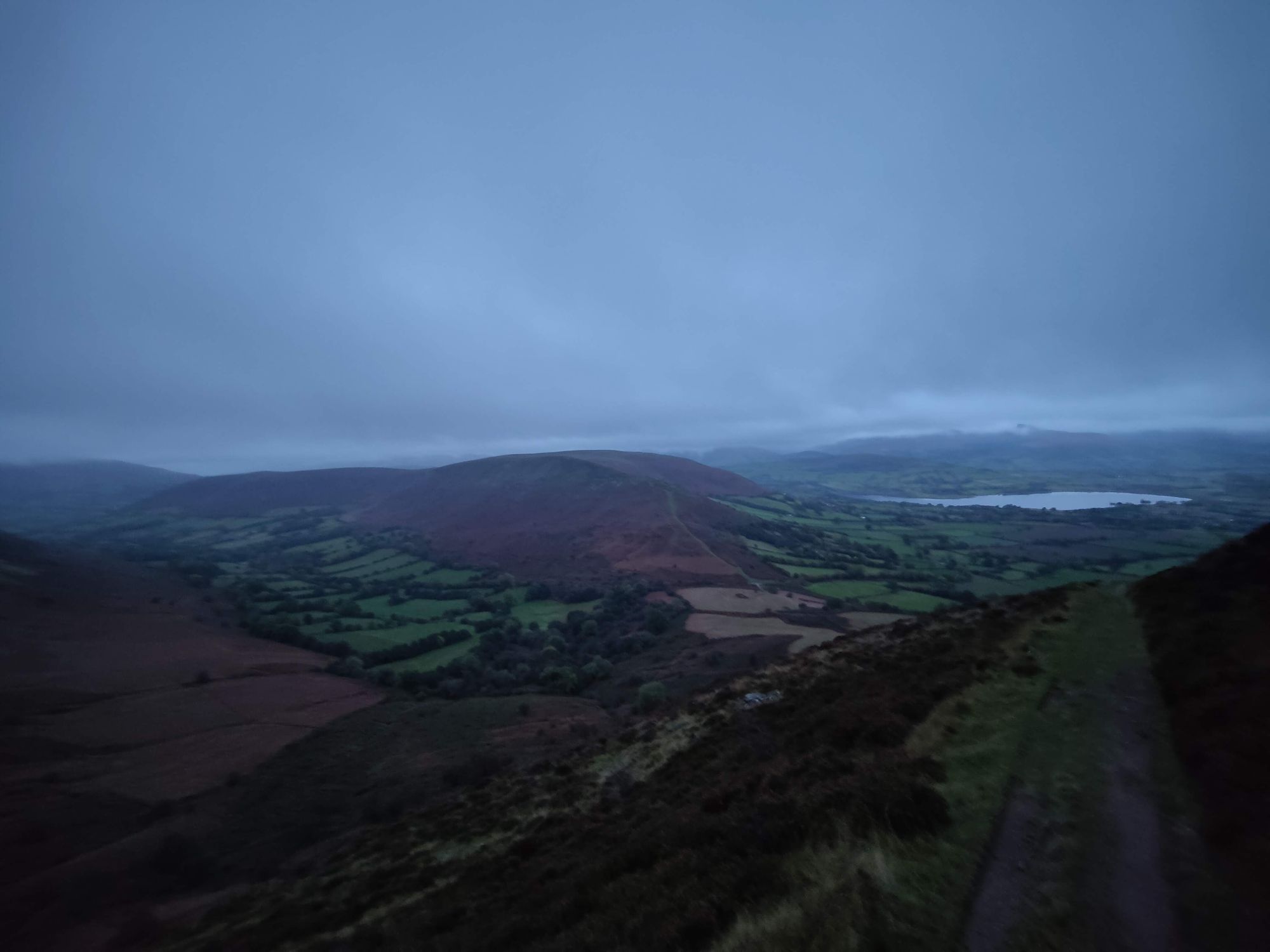 Once finished, the descent the other side is no less hairy, but you do gets long uninterrupted views of Welsh farmland to look at as you watch your footing.