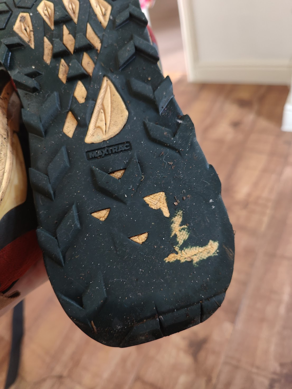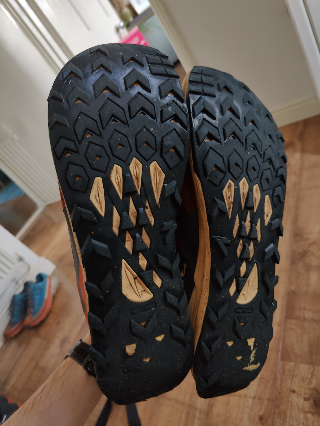With the outsole wearing down they became pretty slippy in the wet and mud, especially when hiking (where the heel, the most worn part, was spending more time on the ground).
