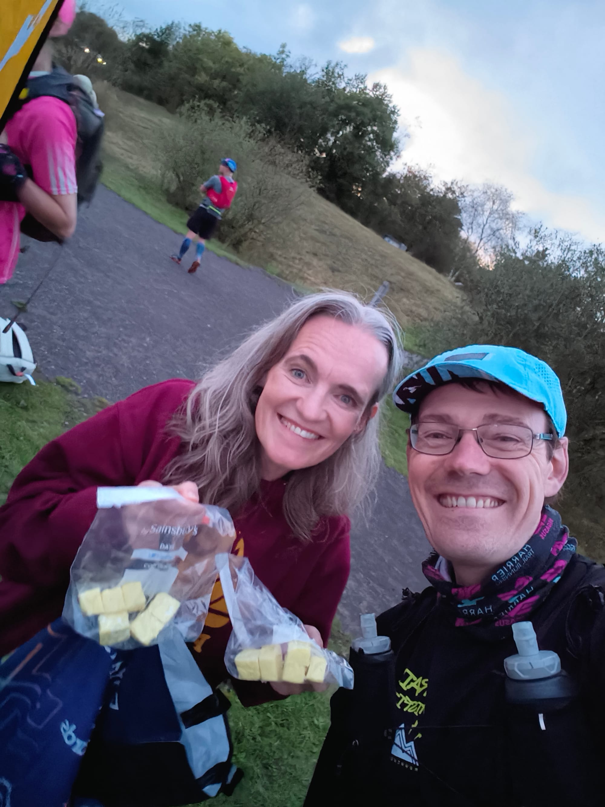 Wonderful Catrin had made a load of lemon meringue fudge ala the SheRuns Cardiff aid stations and was handing out bags to other punks. These were a god-send later on the last stage.