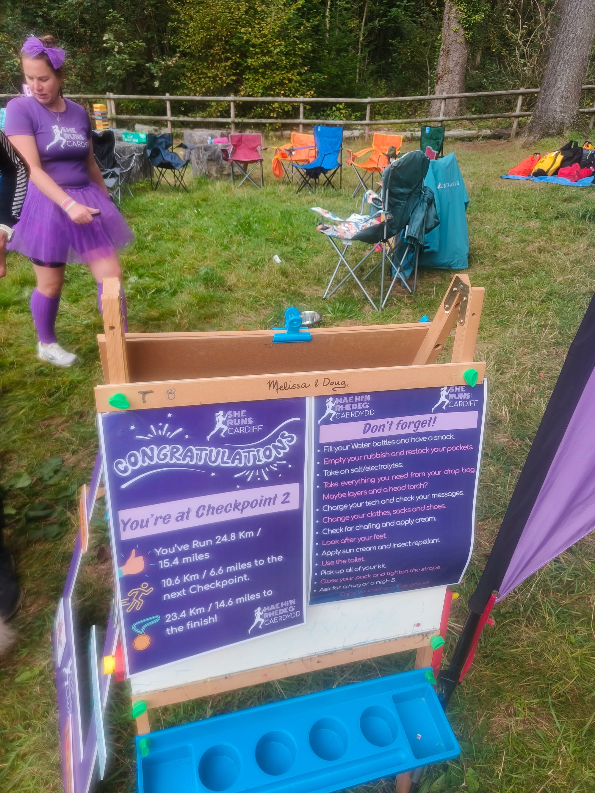 Came into the ultimate, best ever SheRuns Cardiff checkpoint to the warmest of receptions (one of the marshalls cheering everyone in enthusiastically, warm hugs, funny signs, lots of amazing home made food, didn't want to leave!)