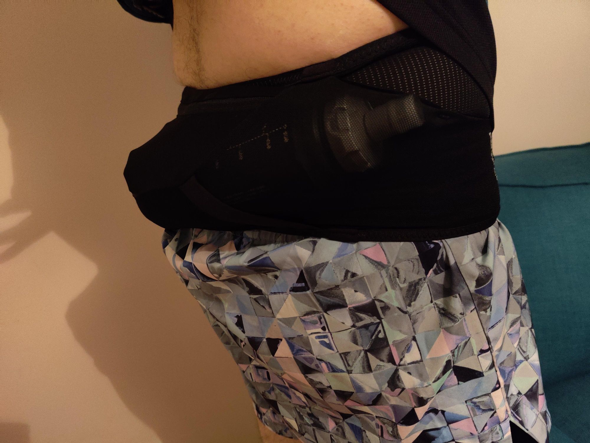In the back I had my phone on the left, feeling nice and snug in the stretchy fabric, then stashed the water bottle on the right.