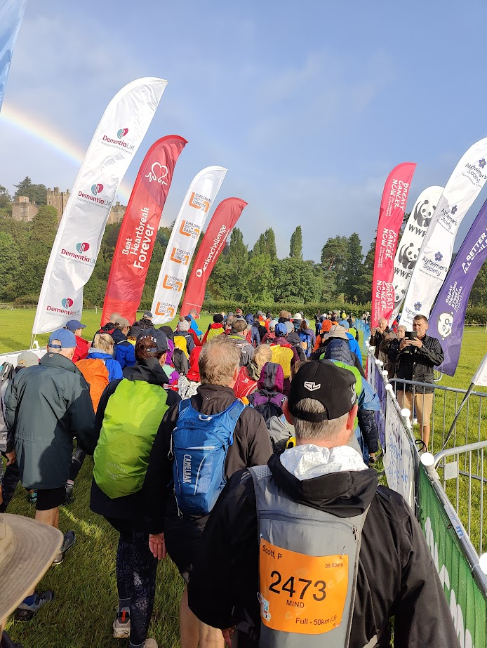 Scott did brilliantly: he'd chosen one of the toughest possible first 50ks in terms of elevation, underfoot conditions and weather, and had to be strong enough at 42k to turn around from the finish line (where he's still get the same medal, tshirt and kudos) and keep going to hit the 50.