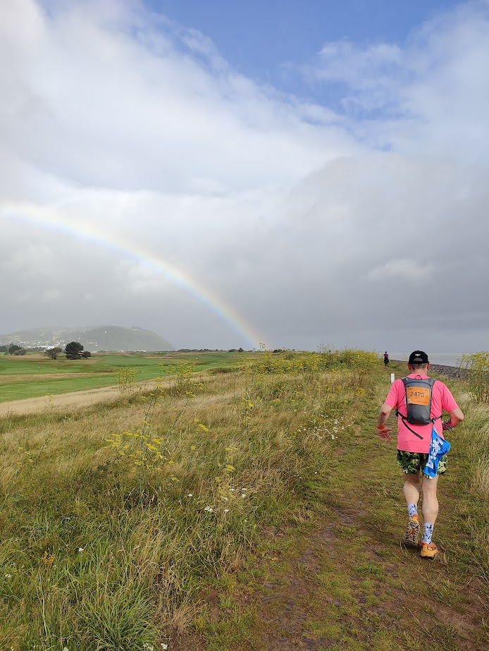 And we were off: the first stage started with a long flat stretch across roads then coastal paths next to the beach, always chasing the rainbow ahead of us.