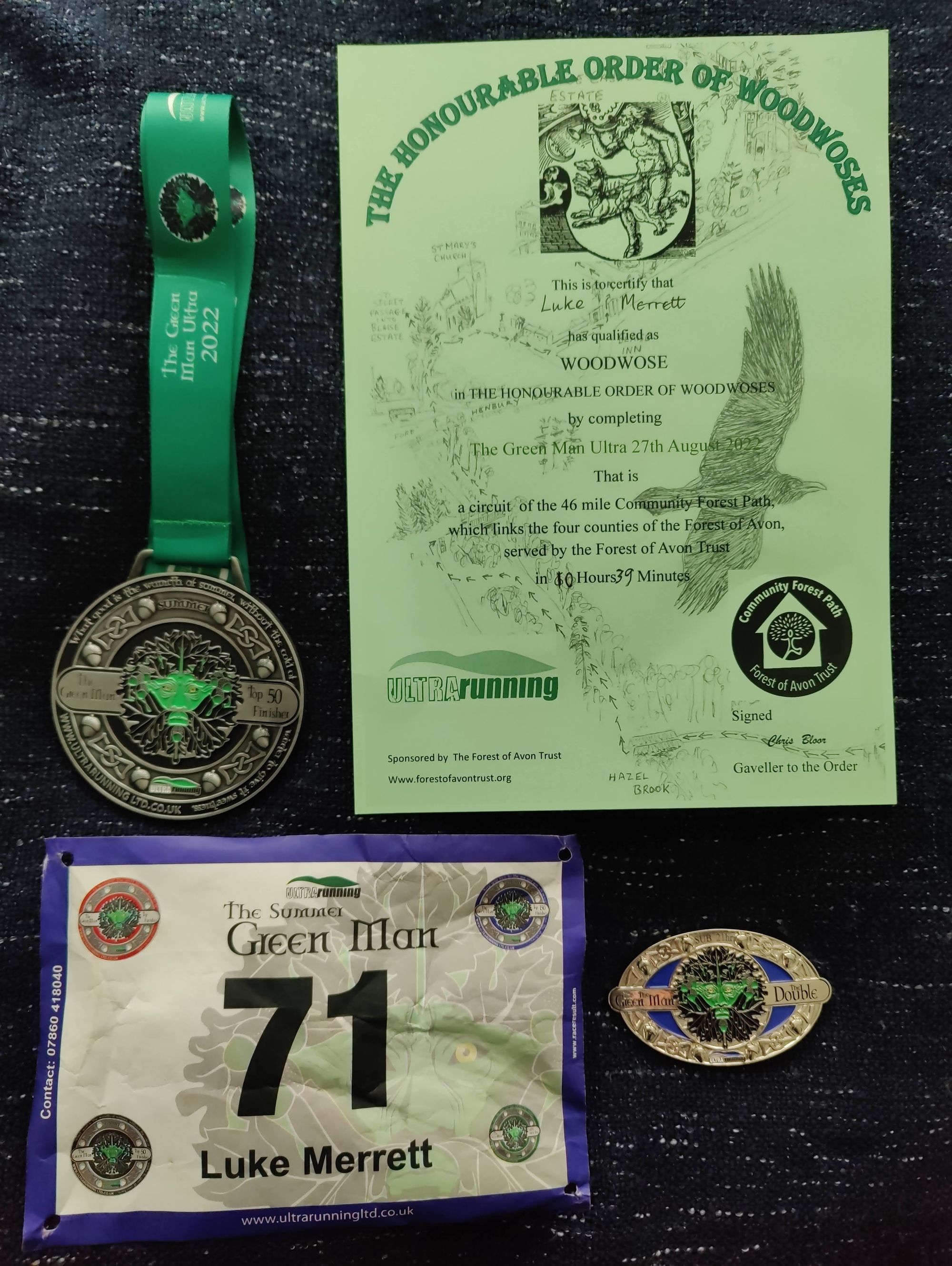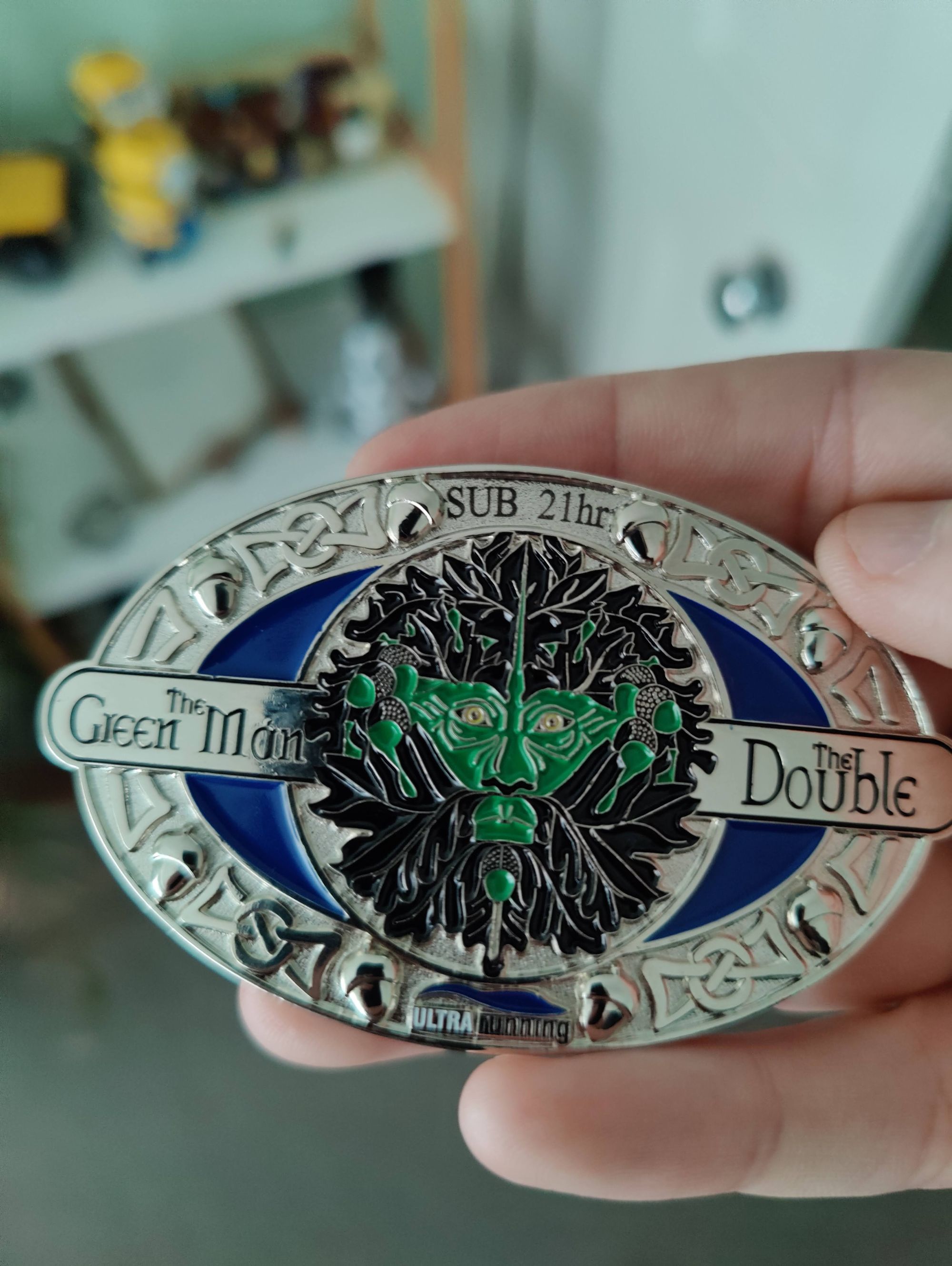 I received a top 50 finishers medal and, the ultimate prize, a sub-21h buckle for doing the Green Man twice in 1 year.