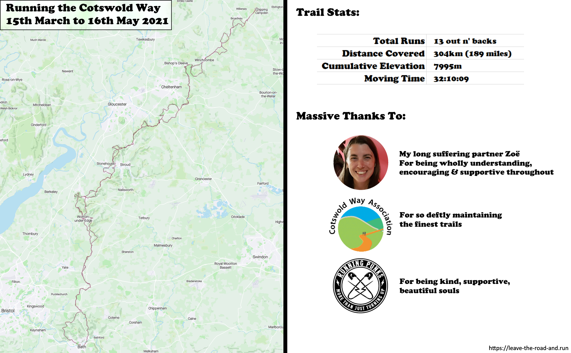 After 2 months of long runs it's done, I reached the end of The Cotswold Way! Covering a total of 189 miles over 13 loops with a cumulative elevation of 7,995m!