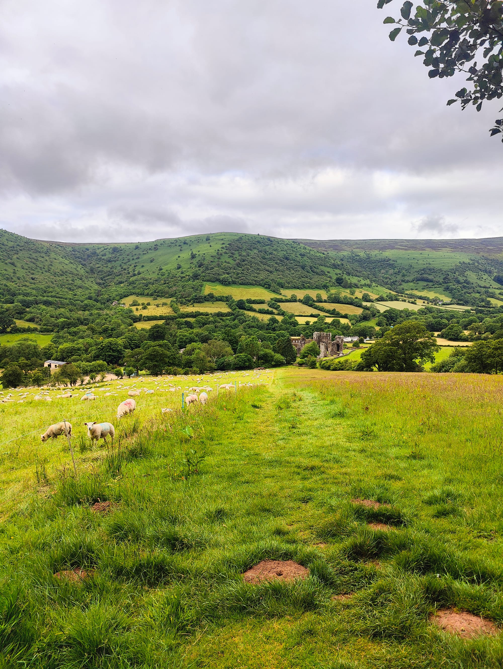 From here it was a nice downhill over the moors then some field crossings and a long lane stretch before reaching the base of Skirrid Fawr.