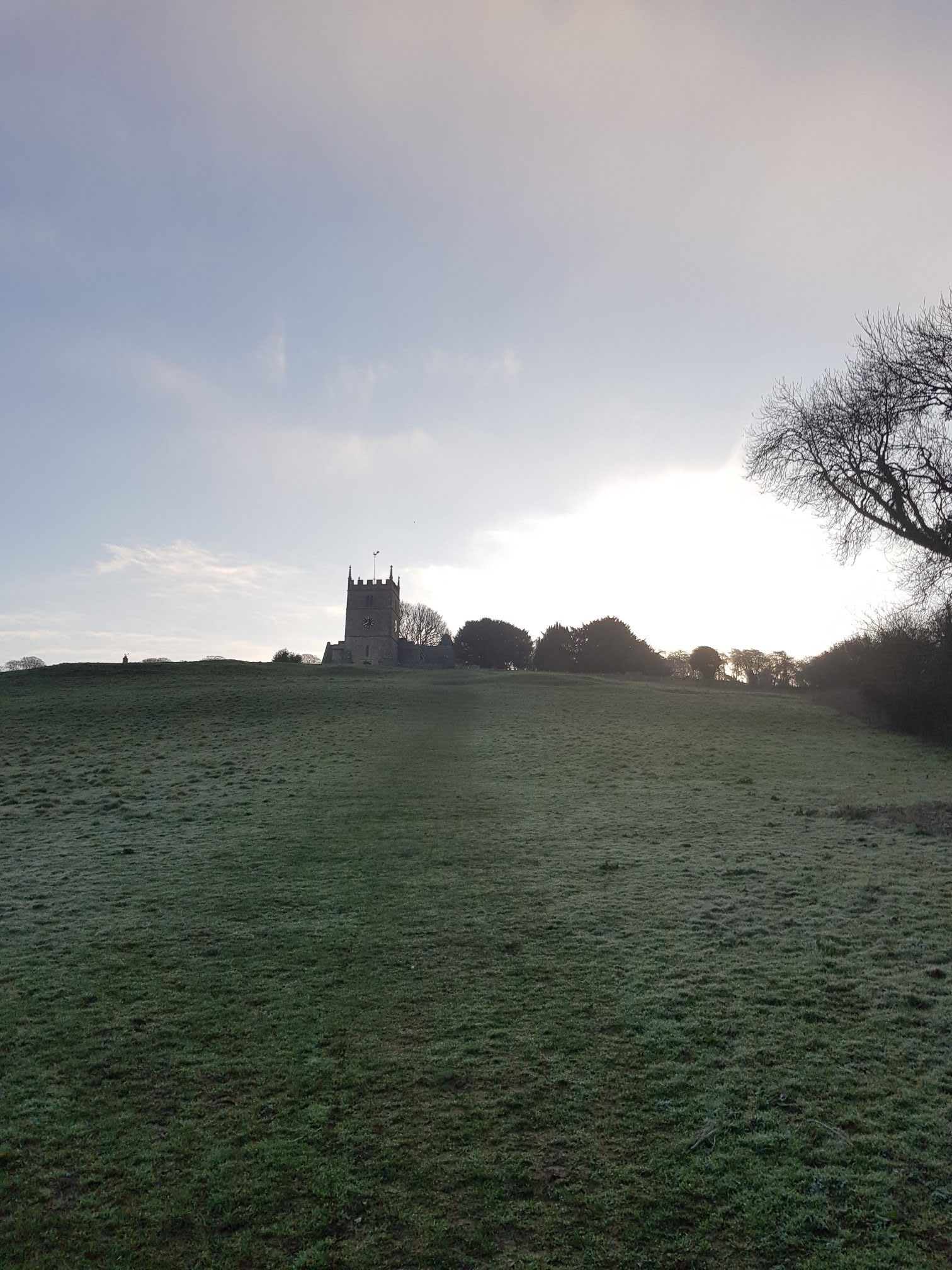 After the park and a short jog along country lanes, it comes to a set of fields climbing to a church overlooking the countryside.