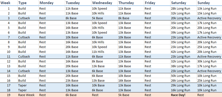 So for the run up to the event I wanted to try a more structured plan recommended by existing ultra-runners.