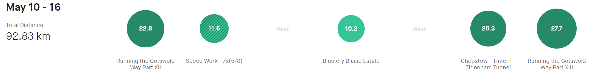 I've been running the Cotswold Way in sections for the last 2 months, doing a series of out and back runs for my long runs over its many beautiful hills. As of Sunday I finally finished, pulling into Chipping Campden on the last training run of the week.